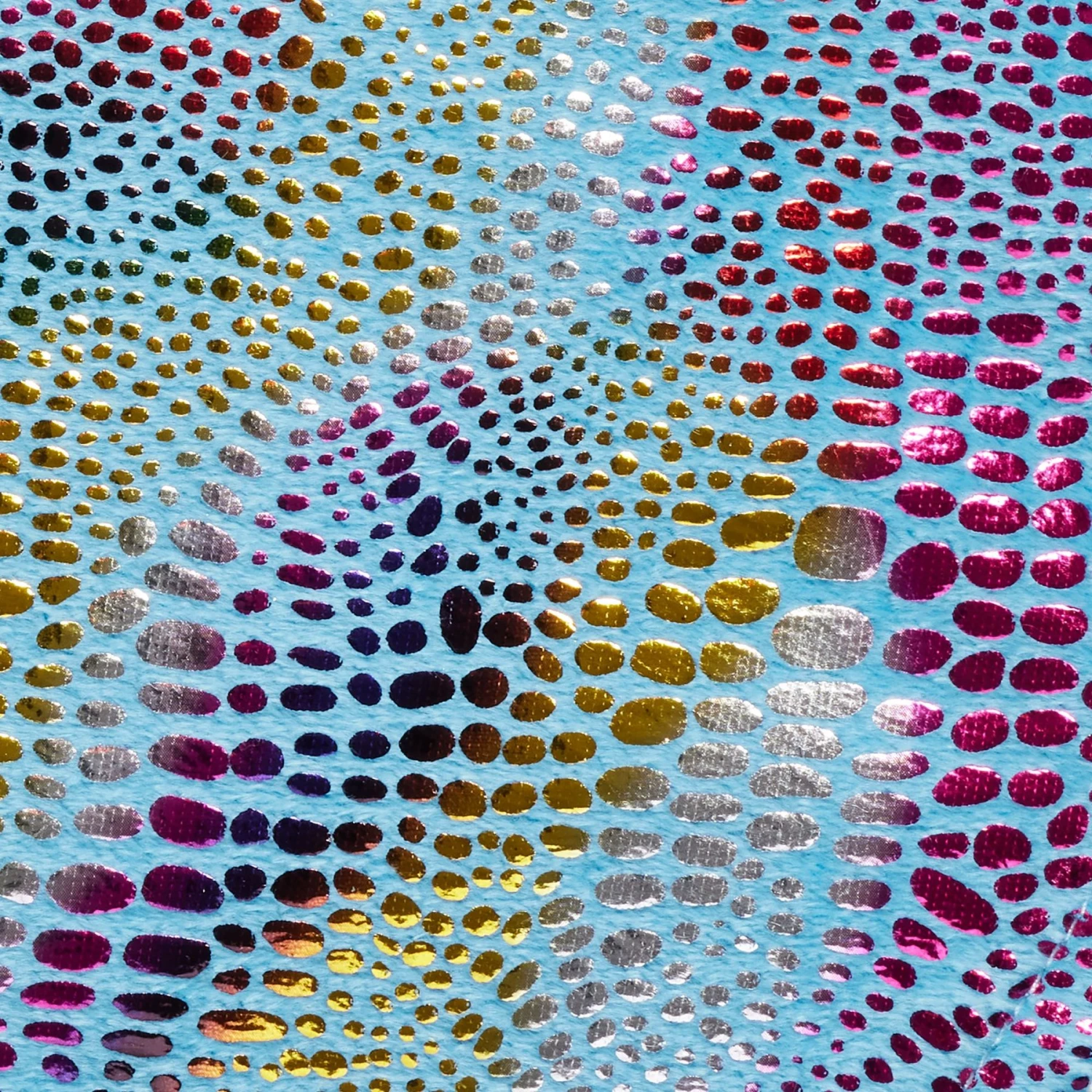 - The body features an allover holographic-scale print for a colorful touch of luminous flare.
