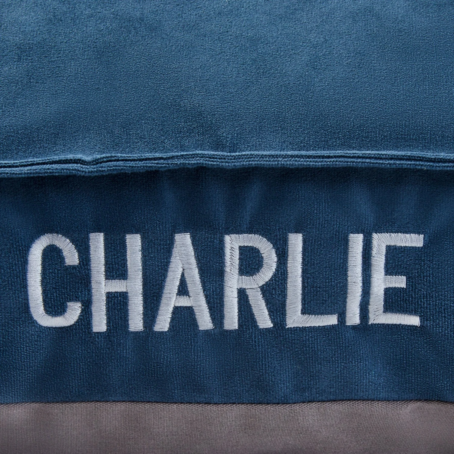 - Back bolster-style bed, customizable with up to 10 1-inch characters, perfect for their name.